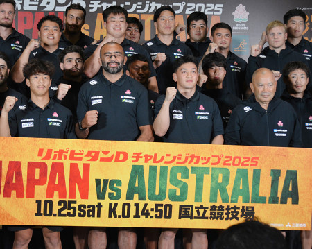 ラグビー日本代表の選手らが22日、東京都内でファンイベントに参加した。国内では今季最後のテストマッチとなるオーストラリア戦に向け、SO李承信は「キックオフの瞬間から仕掛けていく」と決意を述べた。 【時事通信社】