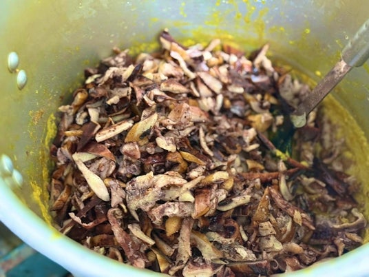 2025年5月に実施された、舳倉屋敷地内で行われた炊き出し及びコミュニティメンバー交流会に参加。今回使用しているいしる干しイカの端材を使ったカレーを制作し参加者の皆さんに召し上がっていただきました。