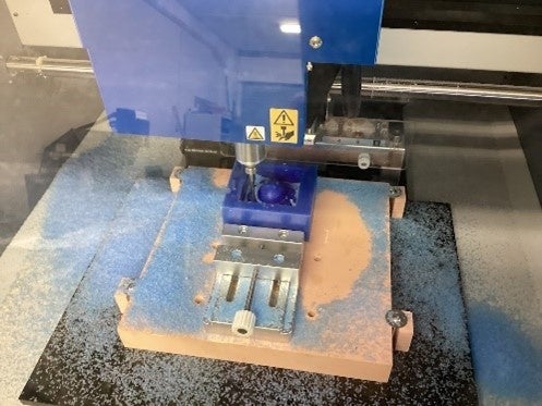 3DCADのデータをもとに、鋳造の原型となるモデルを、CNCフライス盤を用いて両面切削でつくりました。最も時間を要した工程であり、手順を遵守することの重要性を学びました。