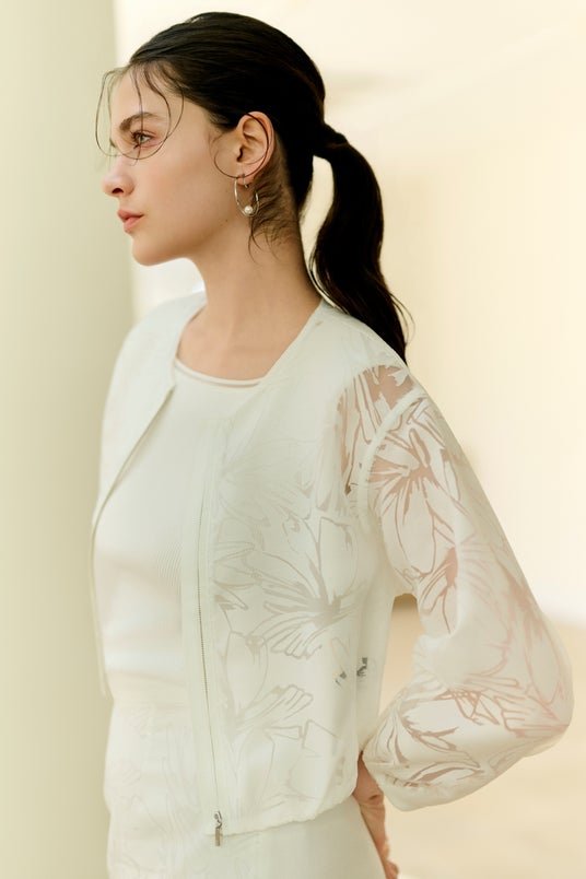 春夏の第二弾となるヴィジュアルLOOKではエレガントで女性らしいボウタイ付きのレースワンピースや、華やかなフラワー柄が美しいブルゾンとスカートのセットアップなど、クードシャンスらしいシルエットに拘ったアイテムが多数登場します。