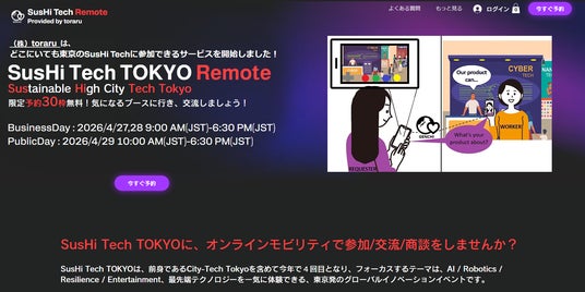 株式会社toraru(本社:兵庫県神戸市中央区)は、分身サービス「GENCHI」(プラットフォームサービス)を、2026年4月27日(火)~29日(水)に東京ビッグサイトで開催される東京発グローバルイノベーションイベント SusHi Tech Tokyo 2026への来場経路としてGENCHIをご提供する予定で、前回の告知の予定枠が無くなりましたので、無料枠を増枠します。