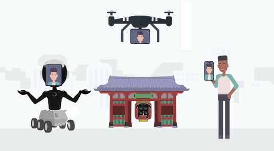 プラットフォーム上で現地の周りに登録している働き手とマッチング。彼らが依頼者の分身(クローン)として、依頼者の目的達成をアシスト。(スマートフォンやタブレット端末に映し出されているのが依頼者です。)